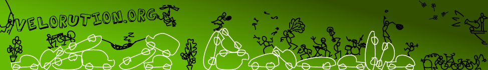 Les collectifs Vélorution s’organisent : pour promouvoir le vélo comme moyen de déplacement ; pour des villes conviviales ; contre les pollutions chimiques et mentales des moteurs et de la civilisation industrielle qui va avec. Non à l’auto-moto qui envahit nos rues, nos cerveaux et nos bronches. Oui à l’autonomie ici et maintenant. Vélorution !